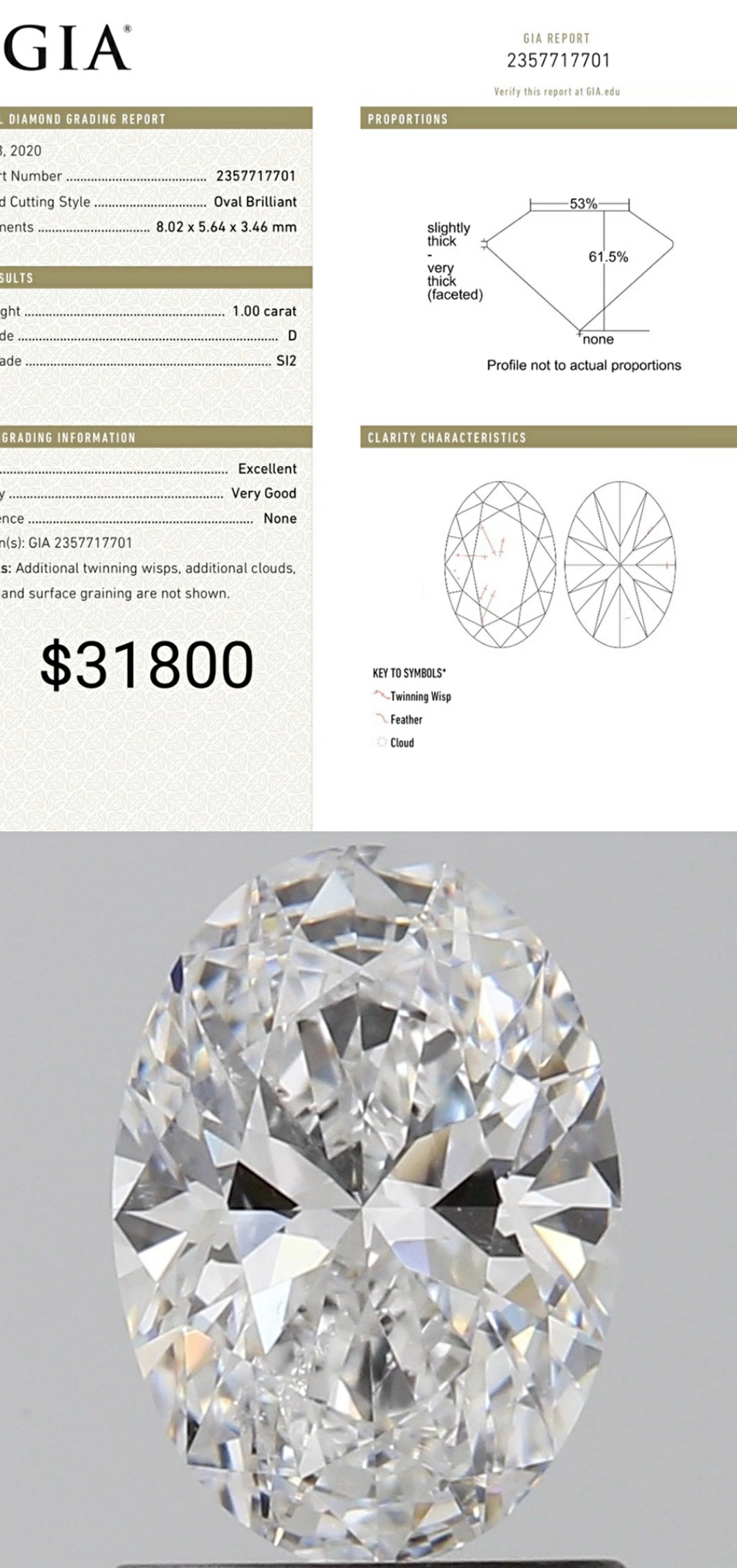 橢圓形1.00ct D SI2 GIA2357717701
