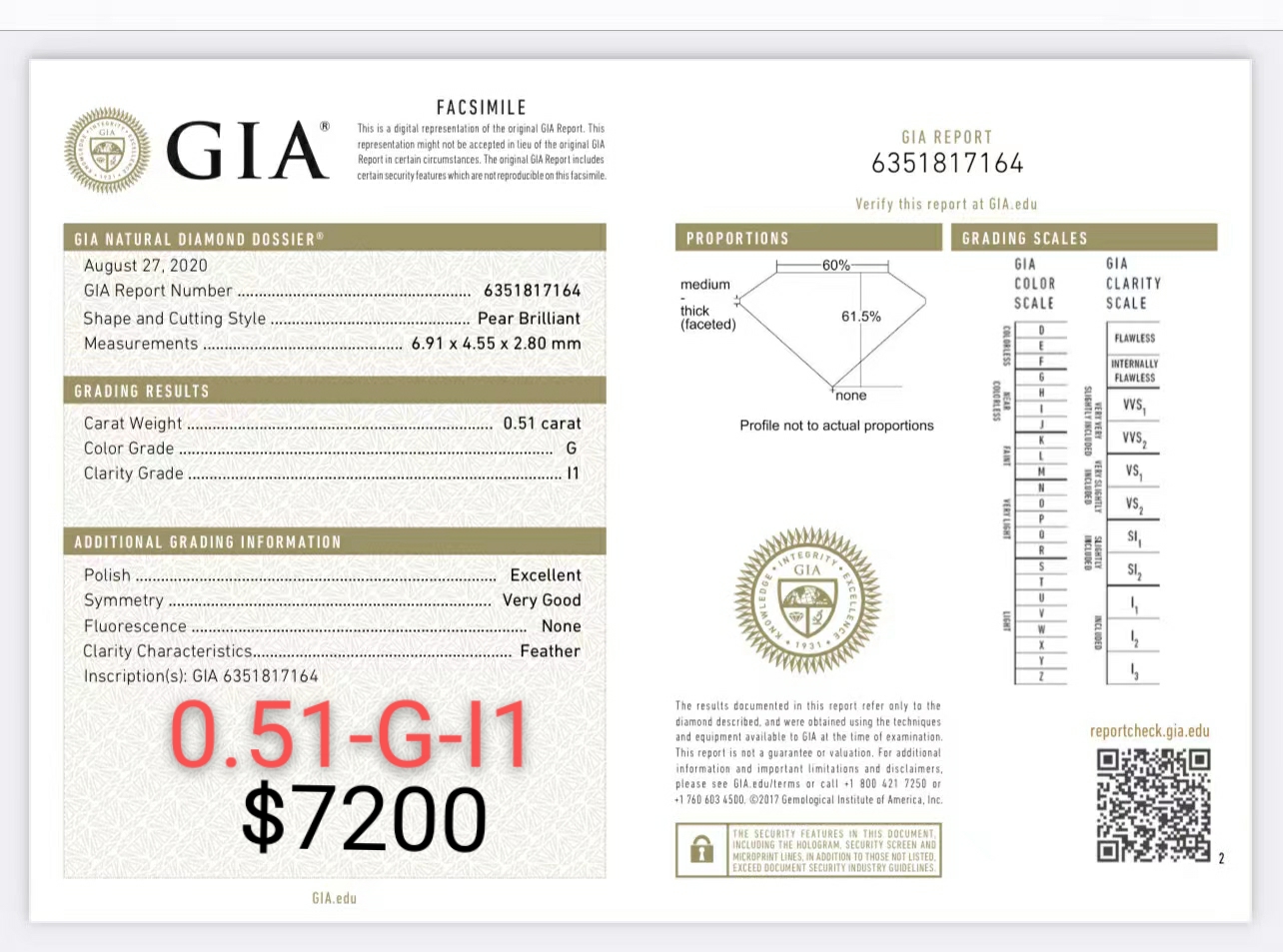 0.51ct G I1 GIA6351817164