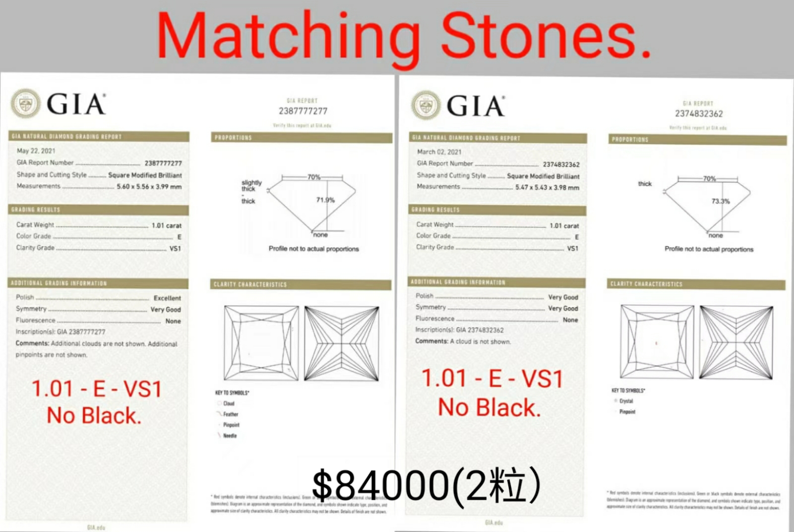 1.01 E VS1 GIA2387777277 1.01 E VS1 GIA2374832362