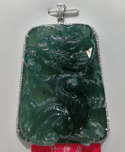 18K天然翡翠鑽石吊墜