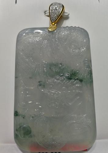 18K天然翡翠鑽石吊墜