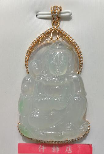 18K天然翡翠鑽石吊墜
