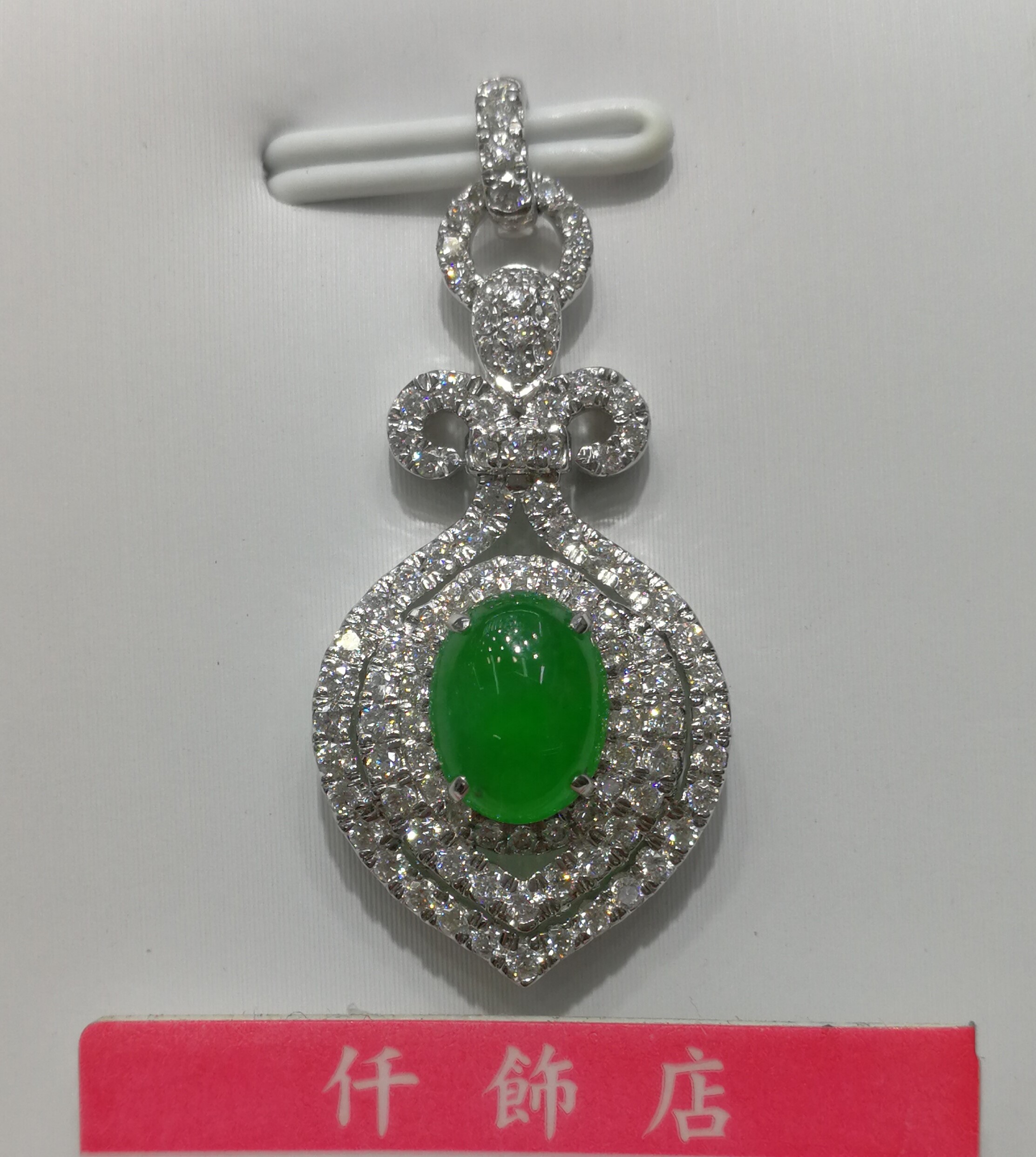 18K天然翡翠鑽石吊墜
