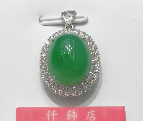 18K天然翡翠鑽石吊墜