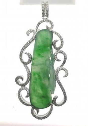 18K天然翡翠鑽石吊墜