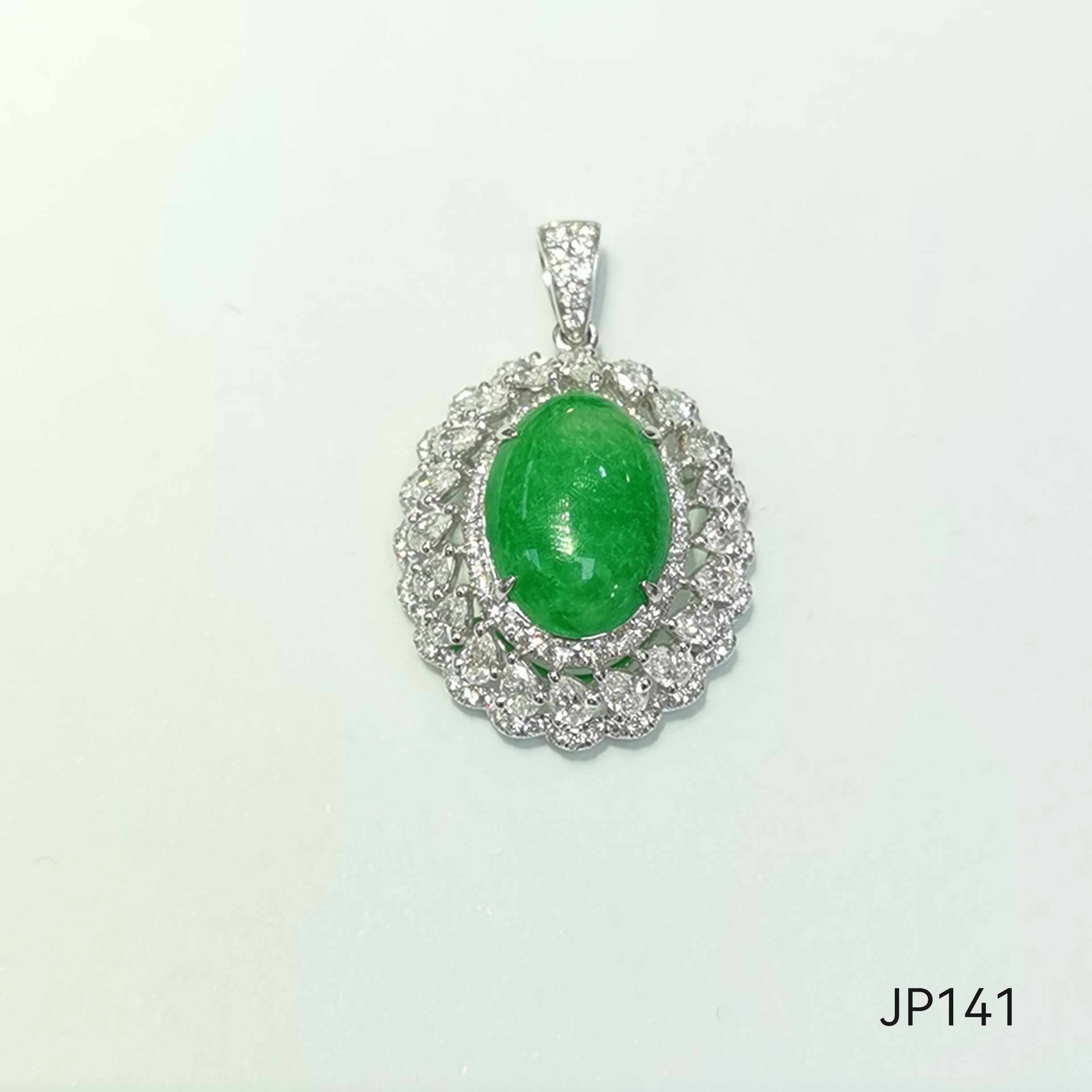 18K天然翡翠鑽石吊墜