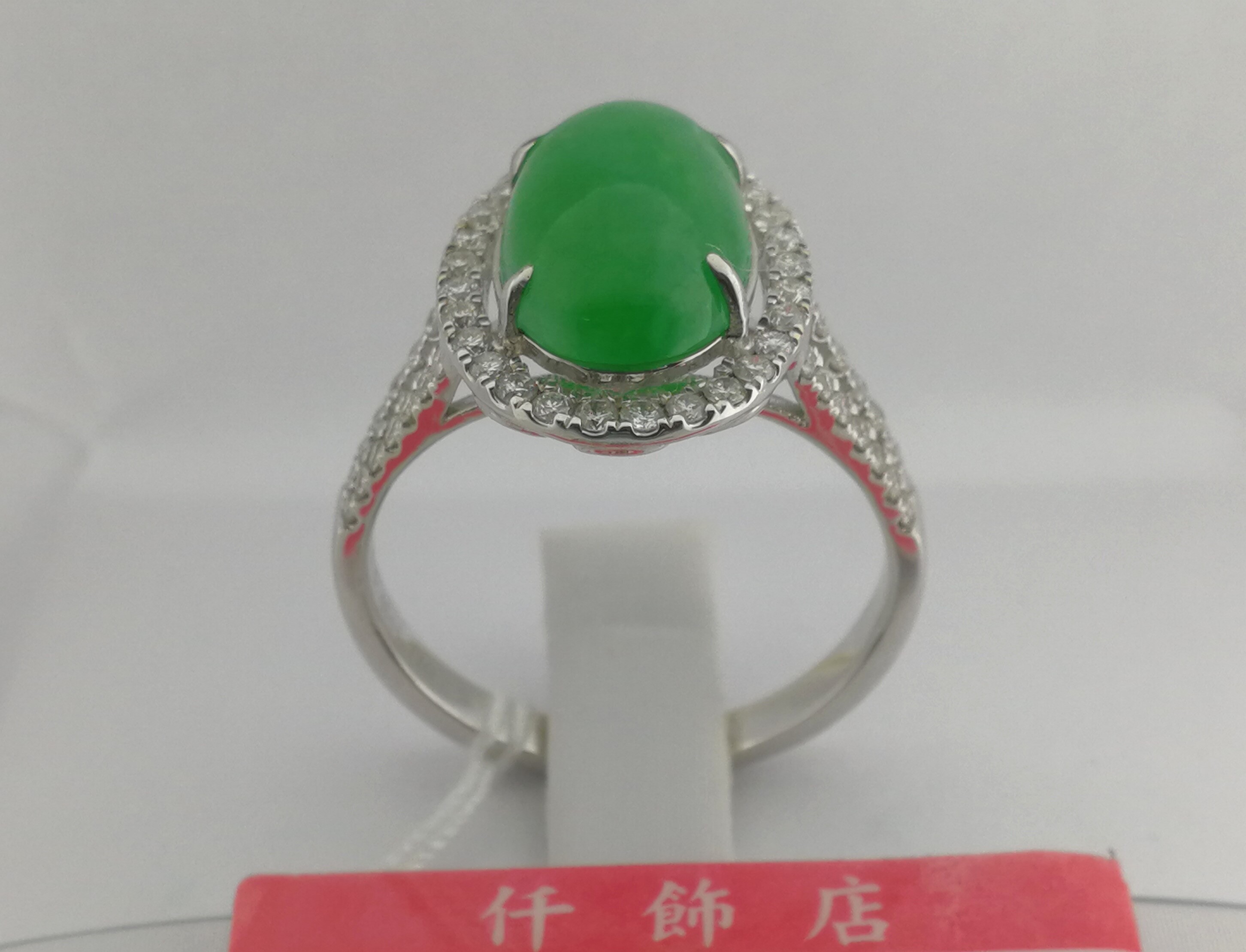 18K天然翡翠鑽石戒指