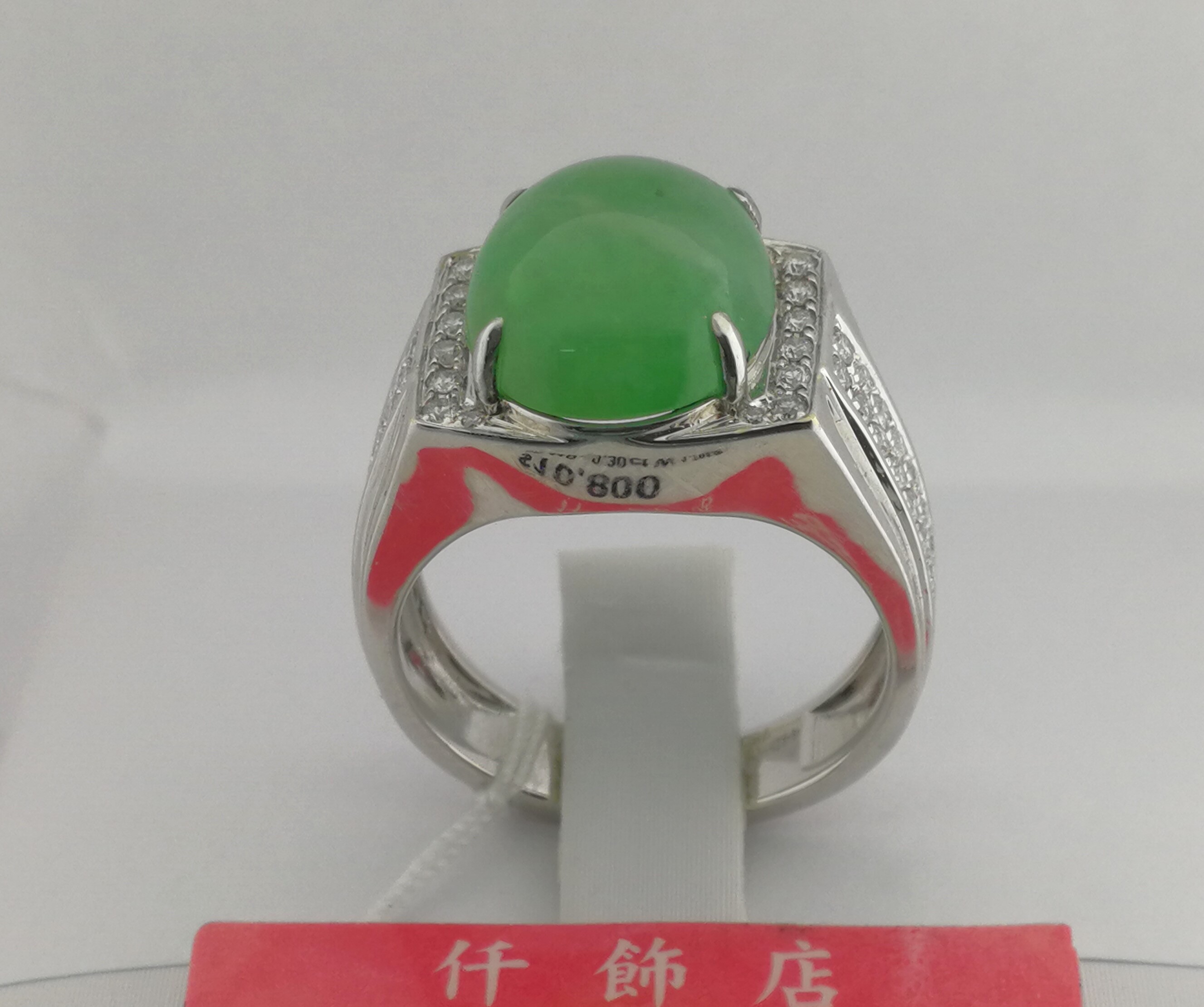 18K天然翡翠鑽石男戒