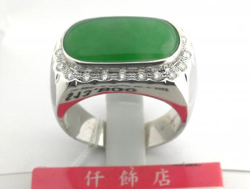 18K天然翡翠鑽石男戒