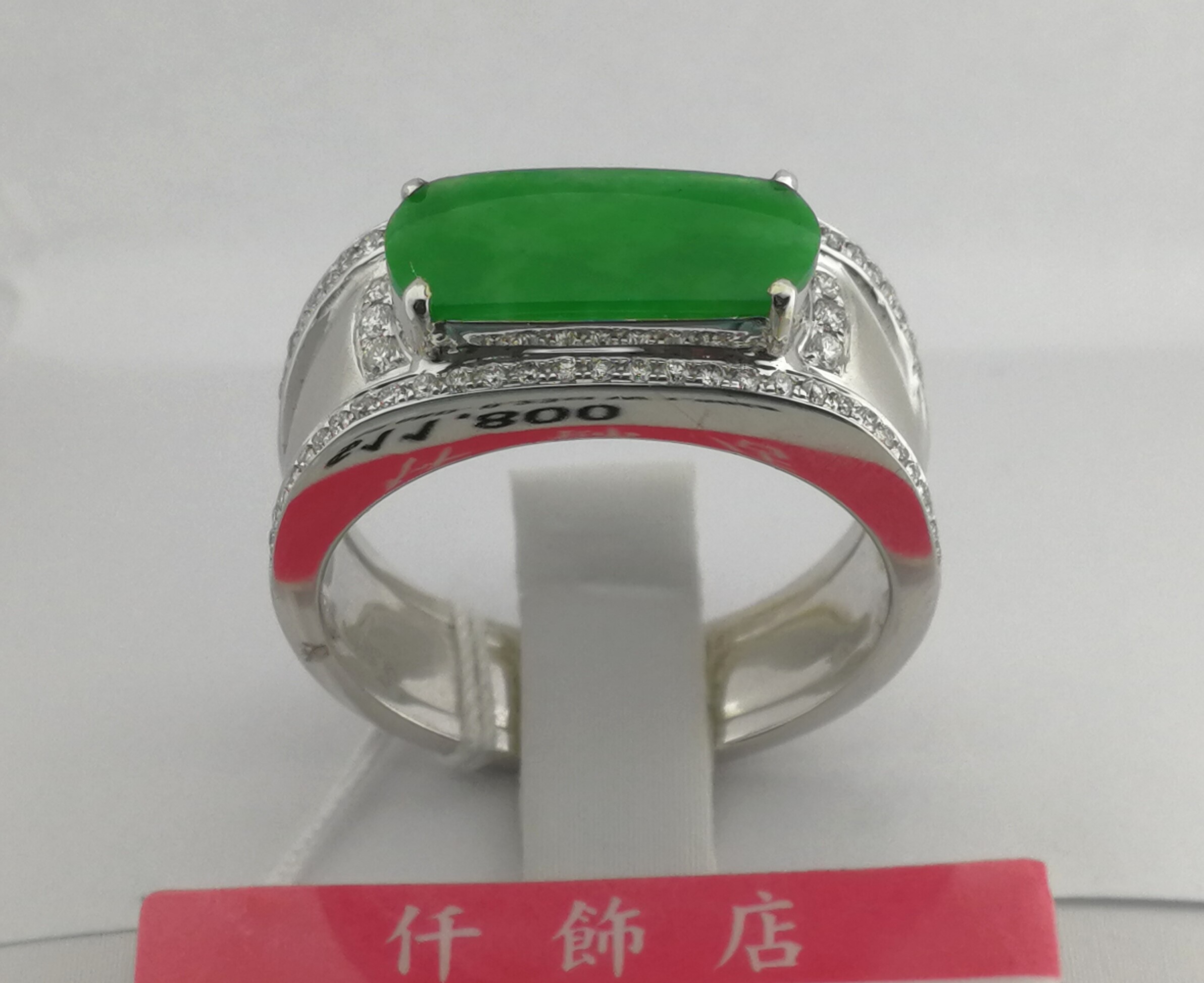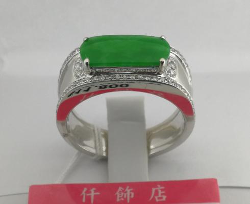 18K天然翡翠鑽石男戒