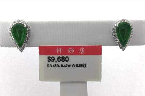 18K天然翡翠鑽石耳環