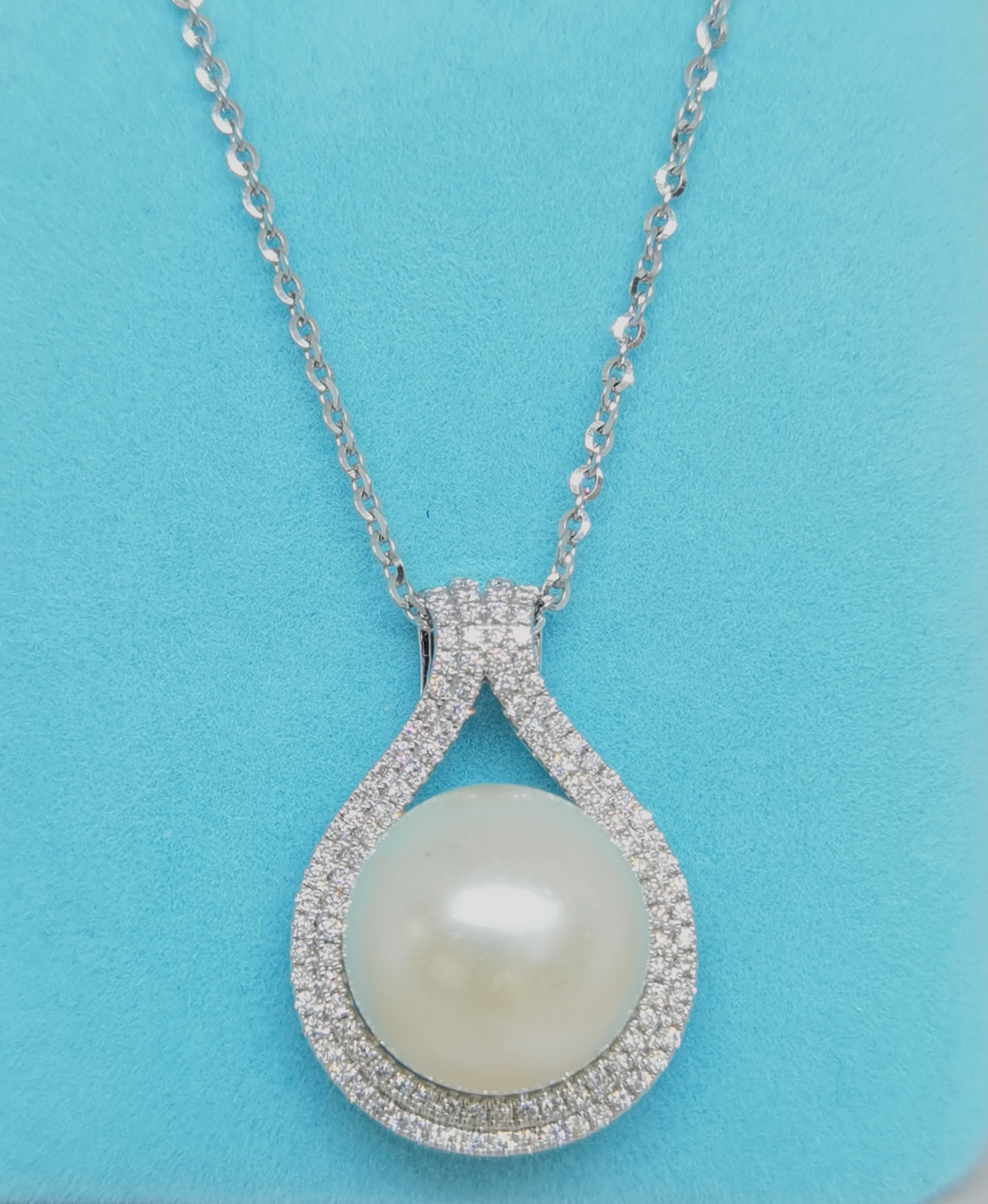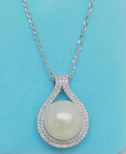 18K白金鑽石珍珠吊墜托 112D-0.75ct W1.16錢
