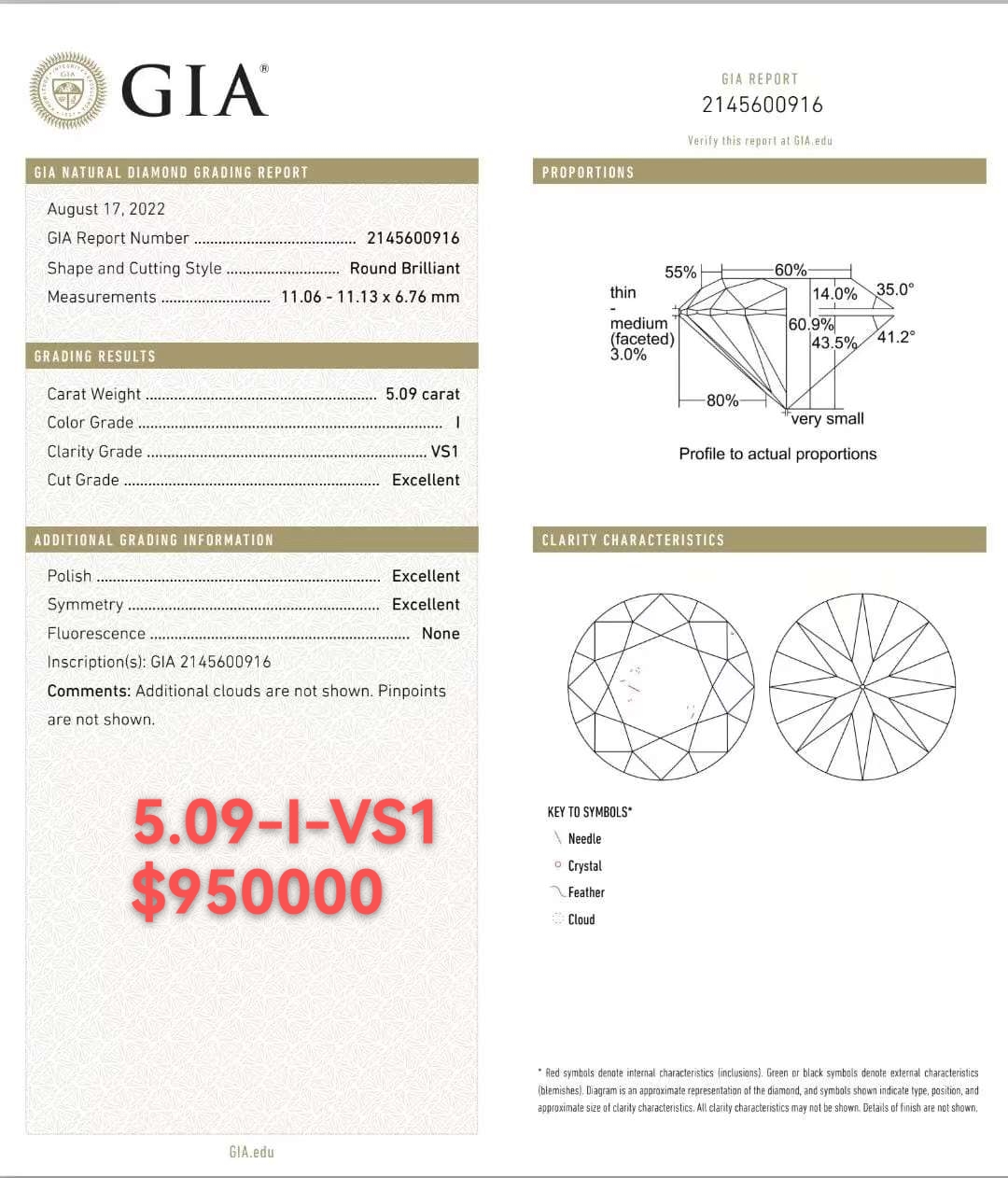 5.09 I VS1 GIA2145600916